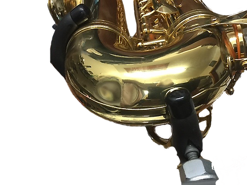 Dents are softened on the bow of an alto saxophone using modern tooling and traditional burnishing methods.